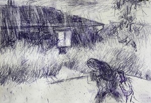 Der Ausblick auf Singen ist schon jetzt beeindruckend, aber es sammeln sich die Wolken, wird gewittrig, ich setze mich erstmal für eine Zeichnung ins Gras, um noch zu überlegen, da kommen immer wieder Leute strahlend grüßend an mir vorbei. Stramme alte Damen mit Wanderstöcken, viele alleine, und junge Paare ganz ohne Ausrüstung, ohne Rucksäcke, ohne Proviant, als wäre der Gipfel der Bäcker um die Ecke. Nun, wenn das so ist ... weiter geht´s.