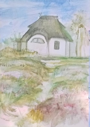 Wir nehmen schon Abschied von der Insel. Im Regen mit Malen nichts zu machen. Wir statten dem Heimatkunde-Museum einen Besuch ab. Schöne Gemälde und Grafiken von der Künstlerkolonie! Wie viele bedeutende Künstler hier waren! Was für eine Bernsteinausstellung! Und eine Replik des slawischen Goldschatzes. Leider kann man nichts lesen: Ein Elternpaar lässt seine Kinder in den empfindlichen, dumpfen Räumen poltern und schreien. Alles, was sie sagen möchten, schreien sie.